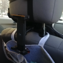 This is really easy to install, and works well with smaller headrests. It is a little hard to pull the arms apart with one hand while you hold the tablet if you need to fully extend the arms.