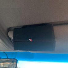 Measuring 3.3” x 6.3” x 2” (L x W x D), this Magnetic Clip-On Sunglasses Case keeps just about any pair of sunglasses securely in place.